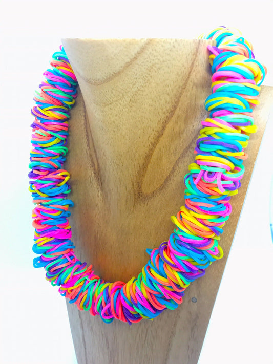 Neon Bands necklace - neon pink multiocoloured recycled rubber band statement accessory
