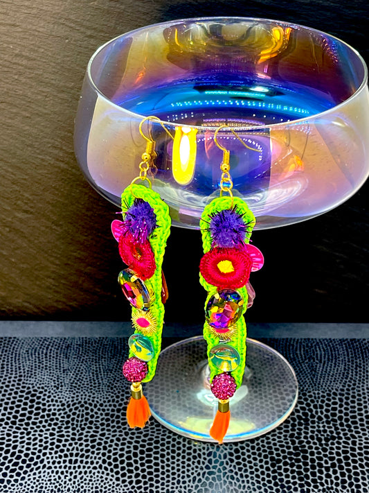 Neon yellow/Lime ZIP IT SHRIMPY earrings