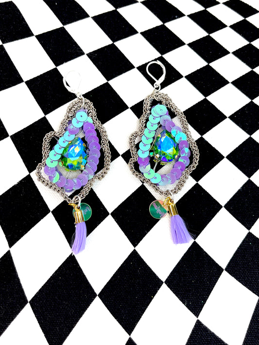 Aquarium earrings 5 (Cute seahorse and blue octopus with aqua tassels)